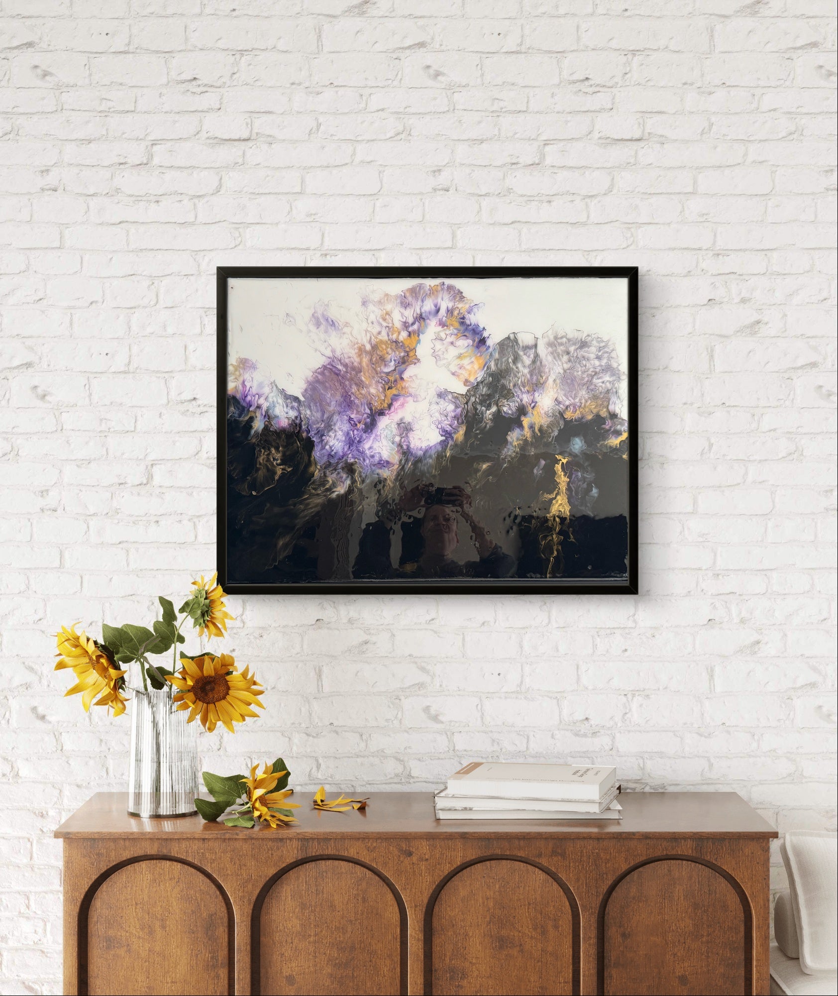 “As I painted this piece, I was drawn to the idea of light emerging from darkness — fleeting moments of illumination that feel both powerful and fragile. The bursts of gold, peach, and orange against the deep black background reminded me of embers suspended in the night, or clouds lit softly by fire from within. It’s a reflection on contrast — on how even in shadow, there is always a quiet, glowing beauty.”