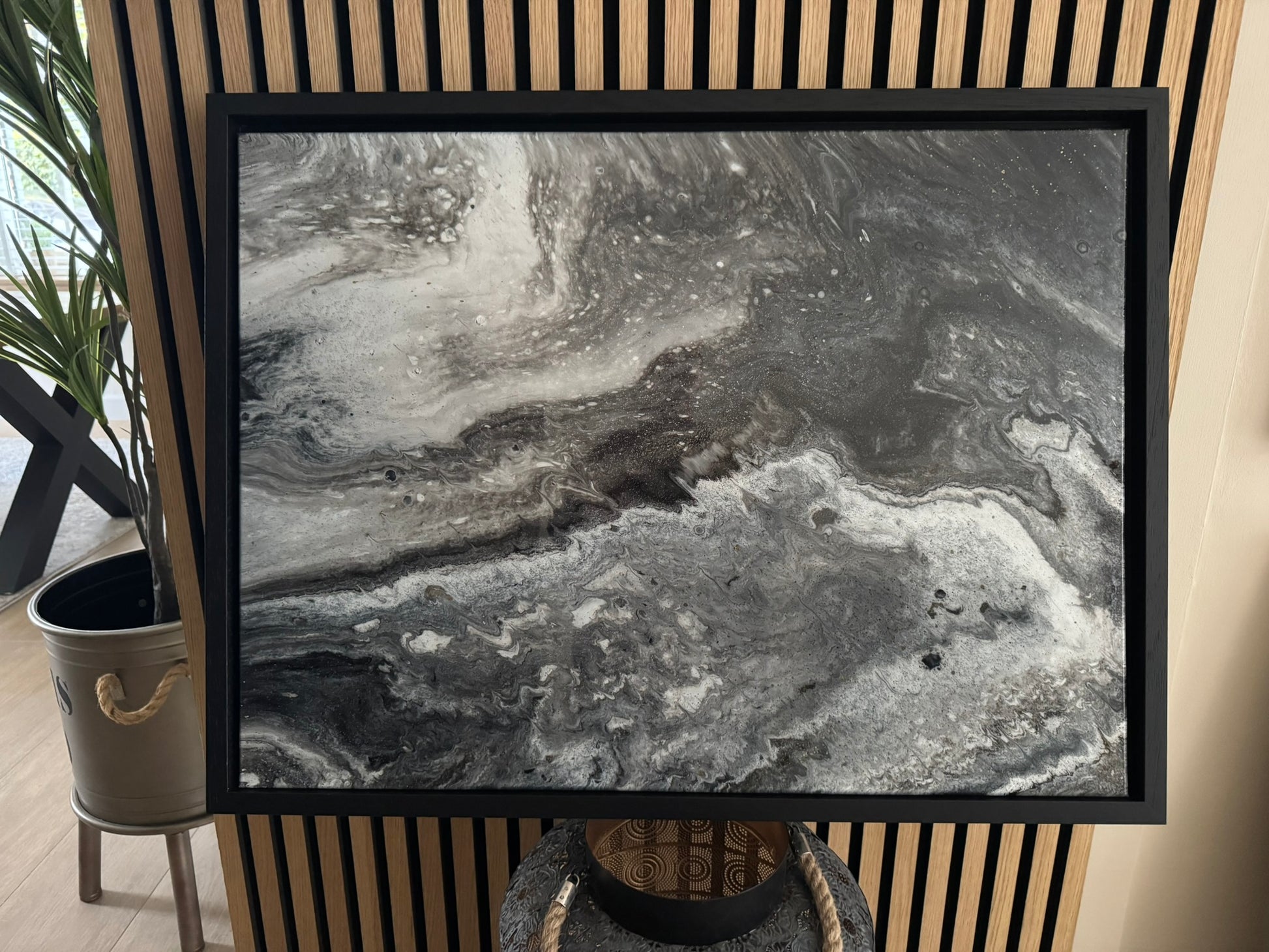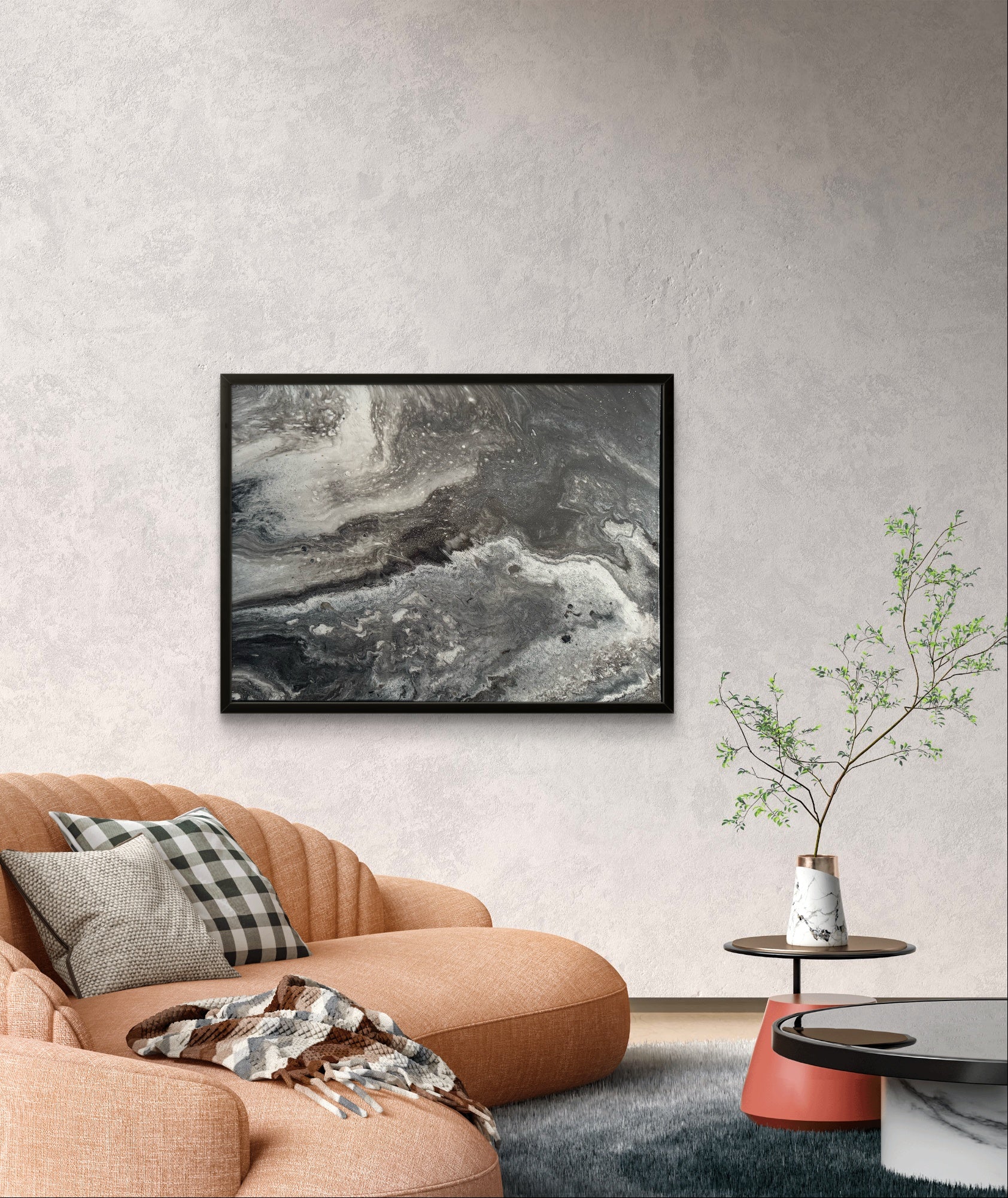 Lunar Tide reflects the quiet tension between stillness and motion — the subtle pull of opposing forces. As I worked on this piece, I was inspired by the rhythm of nature, where stone meets water and shadow meets light. The layers of gray and white flow like shifting tides under moonlight, creating a meditative balance between strength and calm.